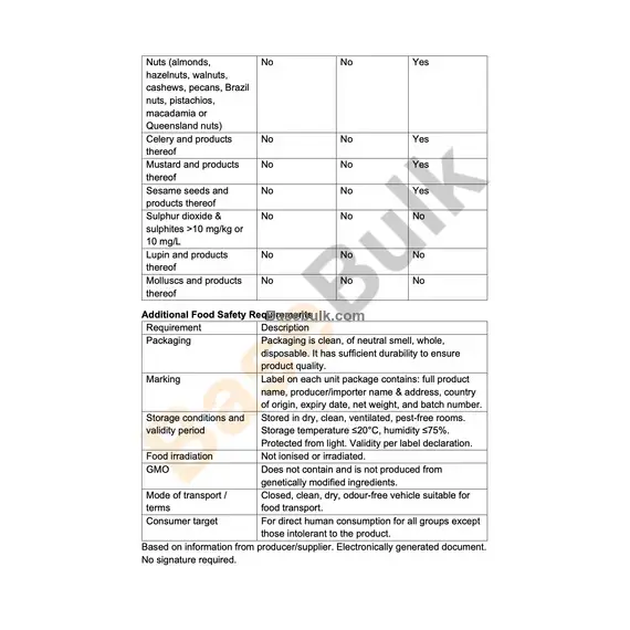 Based on information from producer/supplier. Electronically generated document. No signature required.