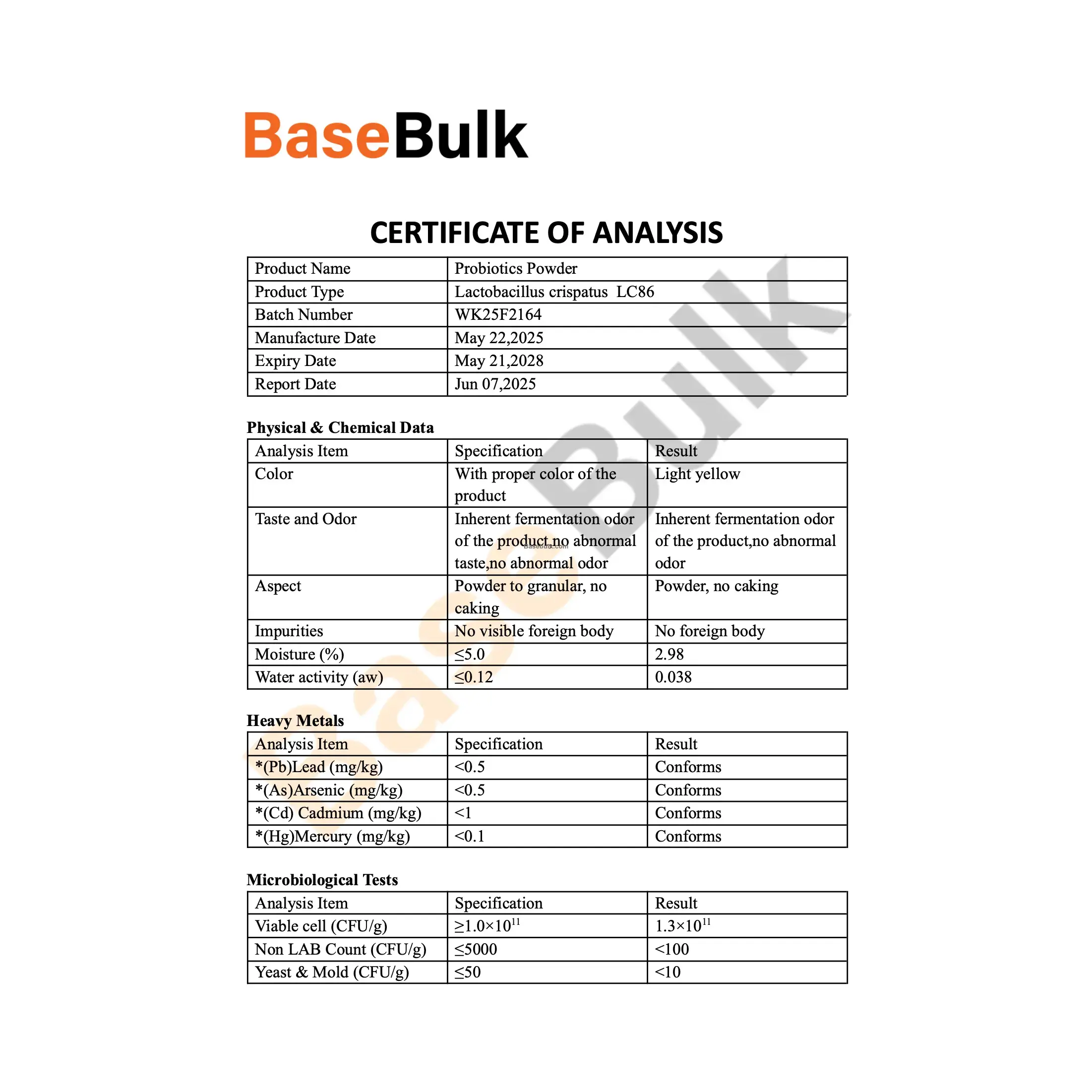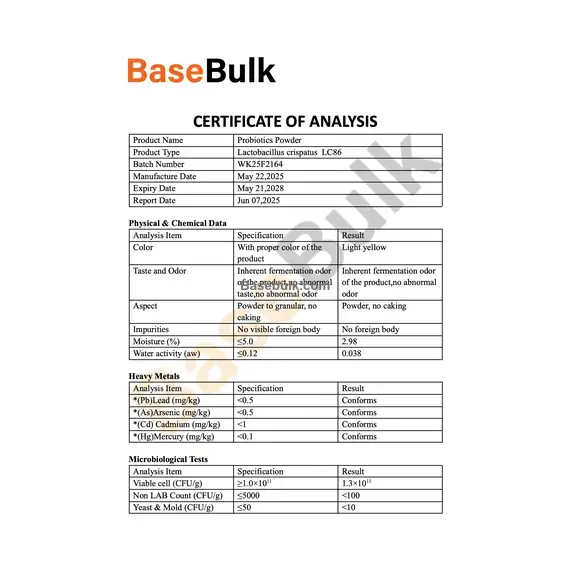 Aspect | Powder to granular, no caking | Powder, no caking |