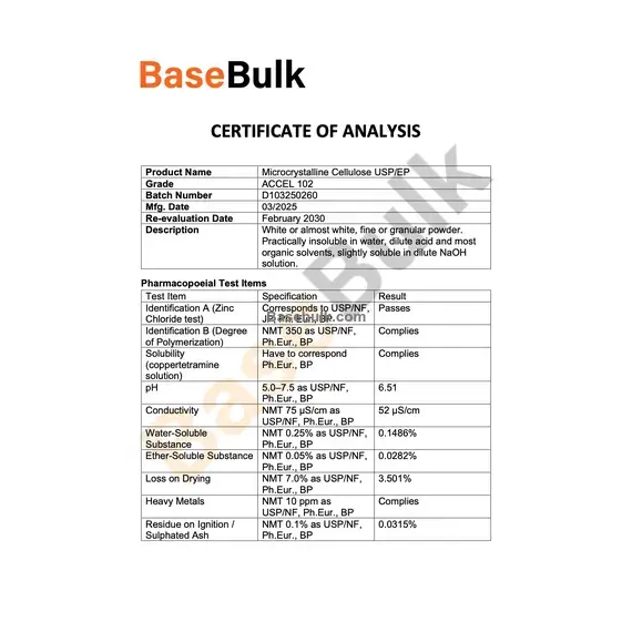 Microcrystalline Cellulose PH-102