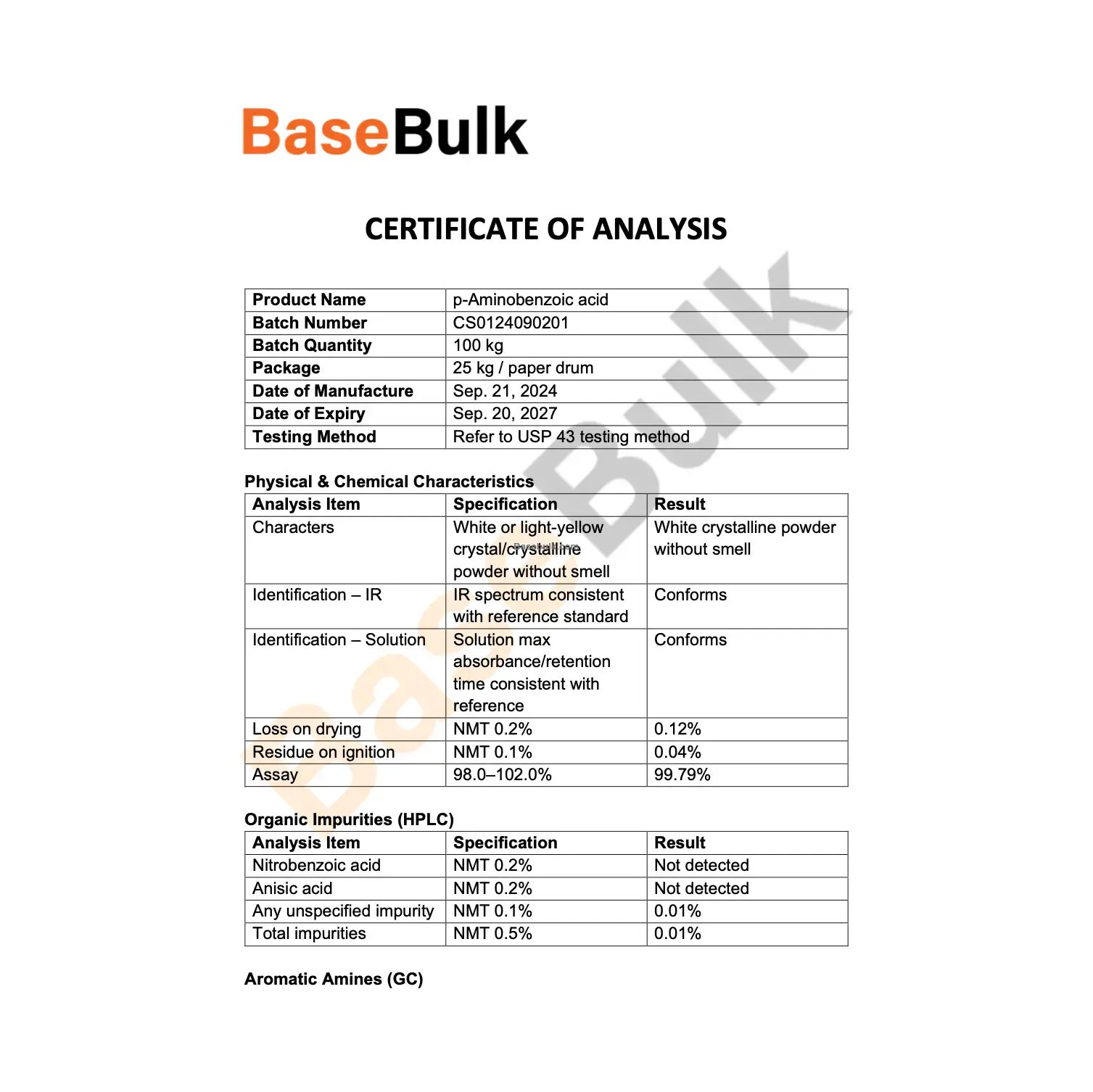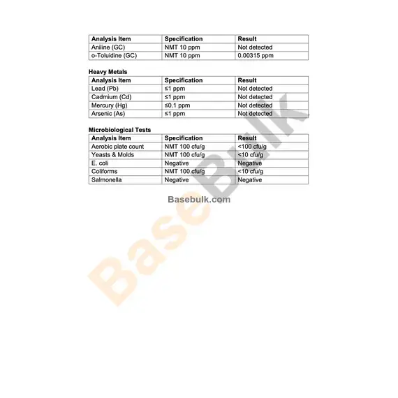 Aniline (GC) | NMT 10 ppm | Not detected |