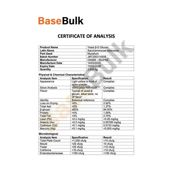 Yeast β-D Glucan (Beta-Glucan 1,3/1,6)
