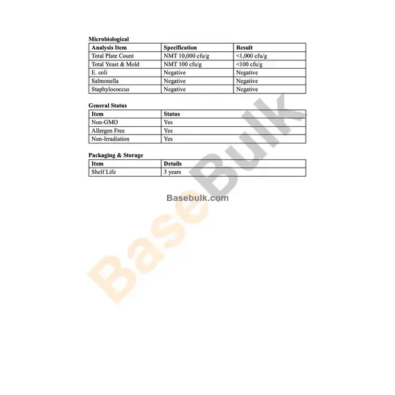 Total Plate Count | NMT 10,000 cfu/g | <1,000 cfu/g |