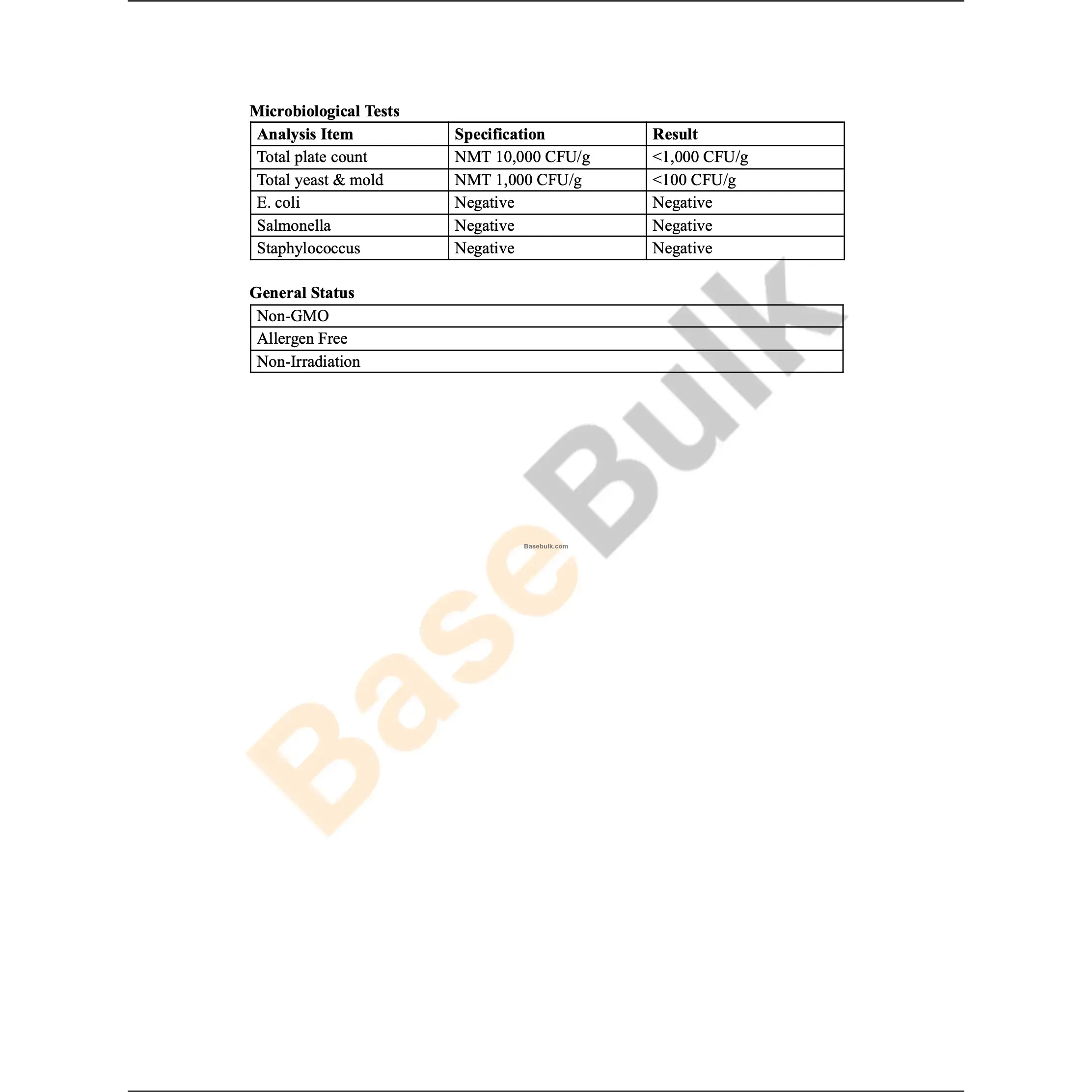 Total yeast & mold | NMT 1,000 CFU/g | <100 CFU/g |