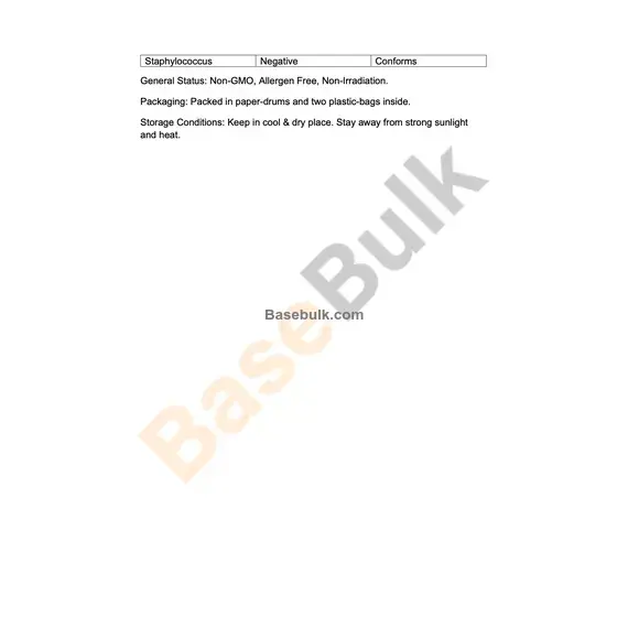 General Status: Non-GMO, Allergen Free, Non-Irradiation.