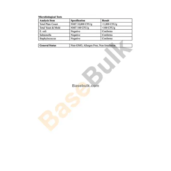 General Status | Non-GMO, Allergen Free, Non-Irradiation |