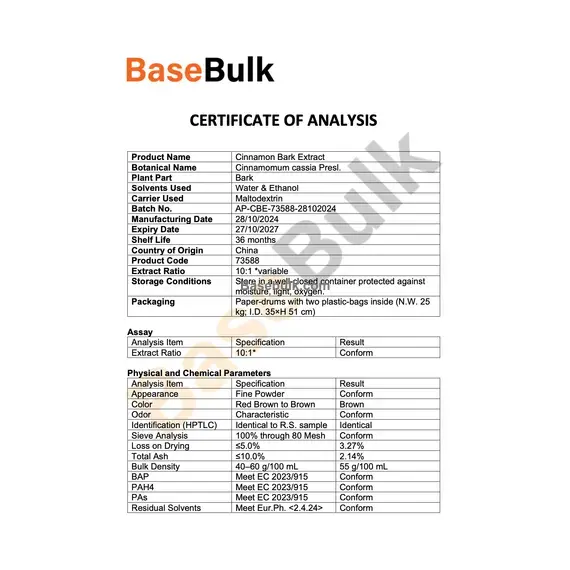 Bulk Density | 40–60 g/100 mL | 55 g/100 mL |