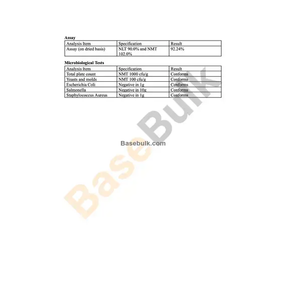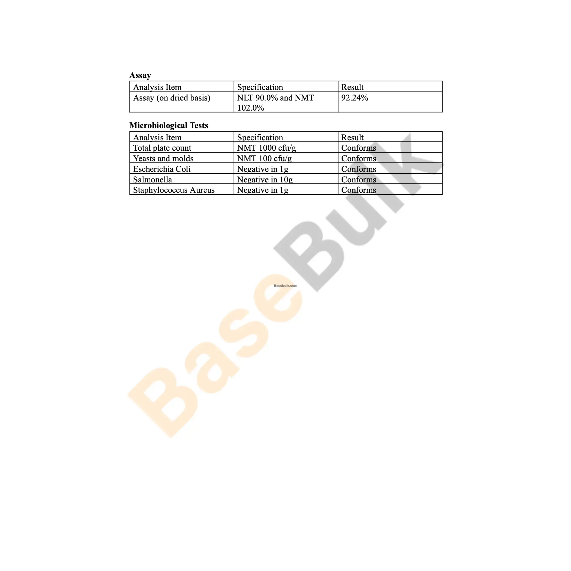 Yeasts and molds | NMT 100 cfu/g | Conforms |