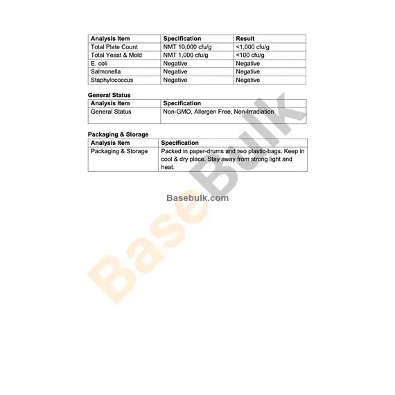 General Status | Non-GMO, Allergen Free, Non-Irradiation |