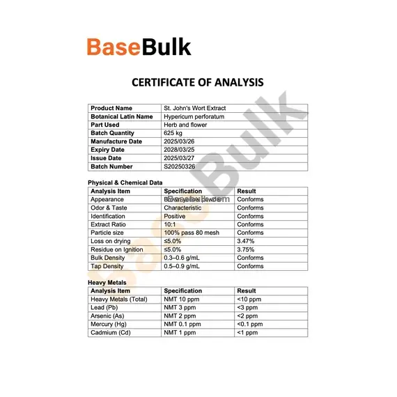 Bulk Density | 0.3–0.6 g/mL | Conforms |