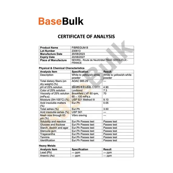 Regulatory Compliance: Complies with EC regulation 231/2012. Conforms to Eur.Ph, USP/NF, BP.