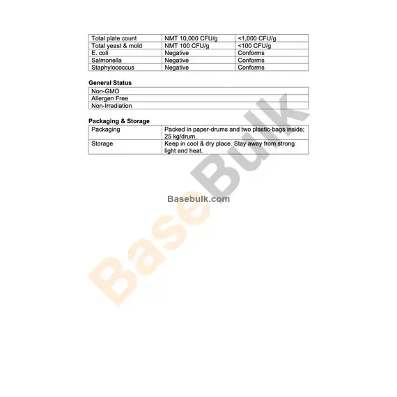Packed in paper-drums and two plastic-bags inside; 25 kg/drum.