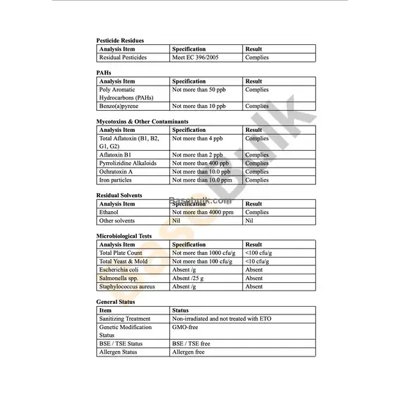Ochratoxin A | Not more than 10.0 ppb | Complies |