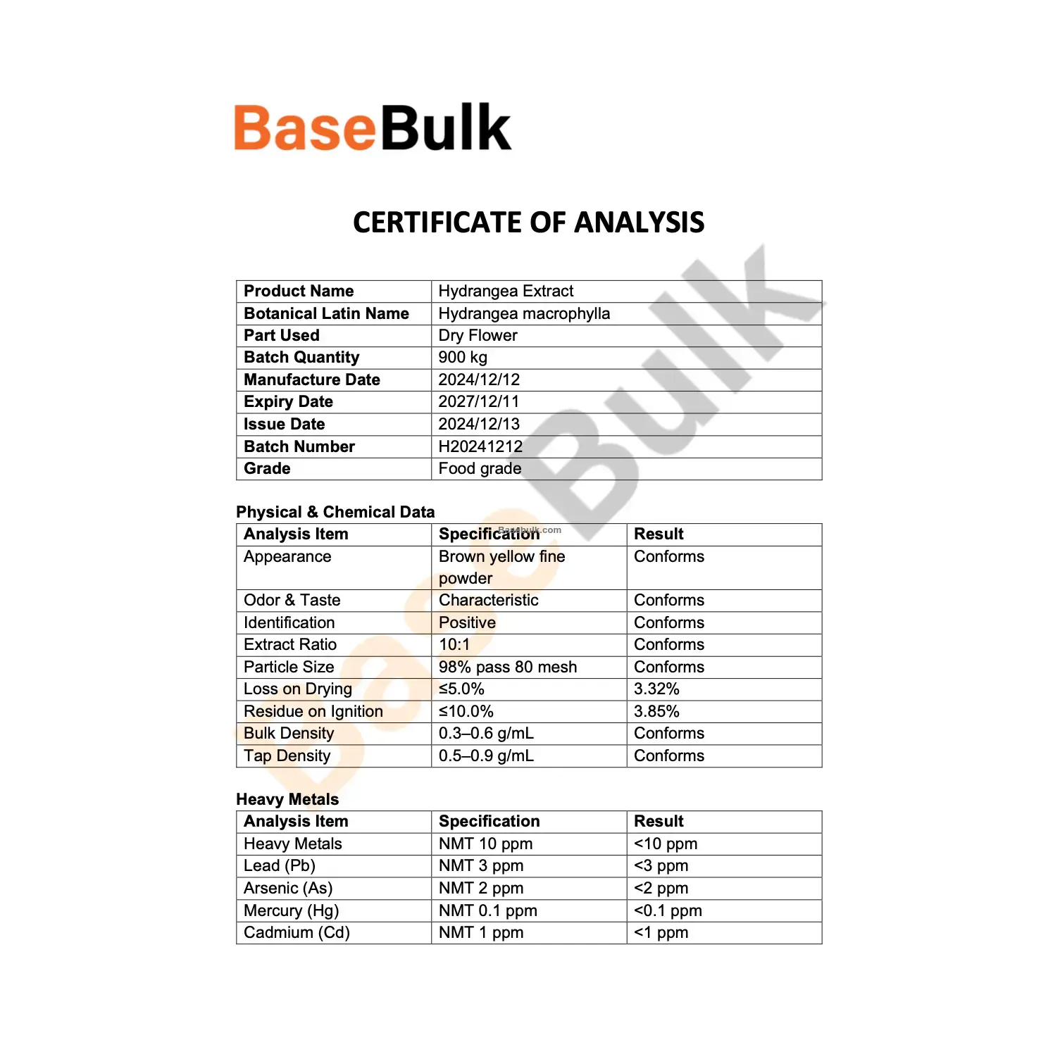 Cadmium (Cd) | NMT 1 ppm | <1 ppm |