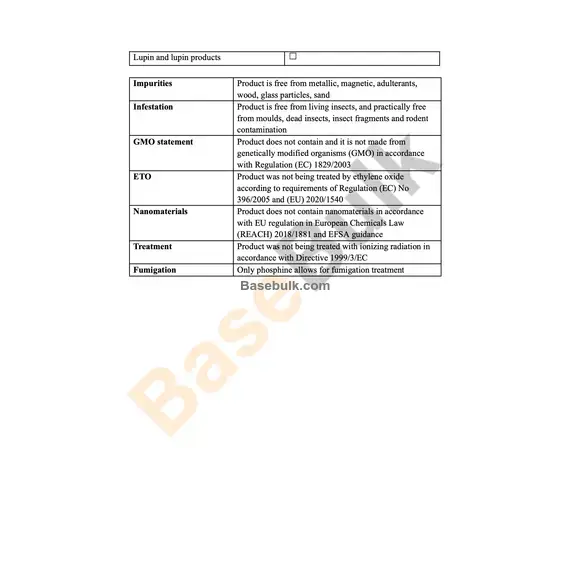 ETO | Product was not being treated by ethylene oxide according to requirements of Regulation (EC) No 396/2005 and (EU) 2020/1540 |