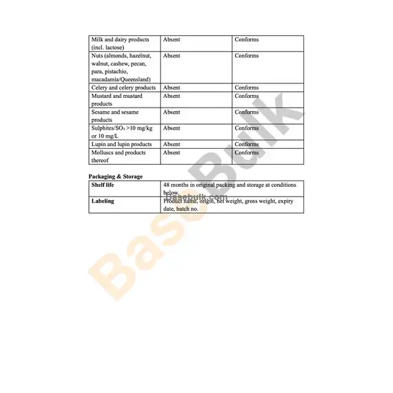 Milk and dairy products (incl. lactose) | Absent | Conforms |