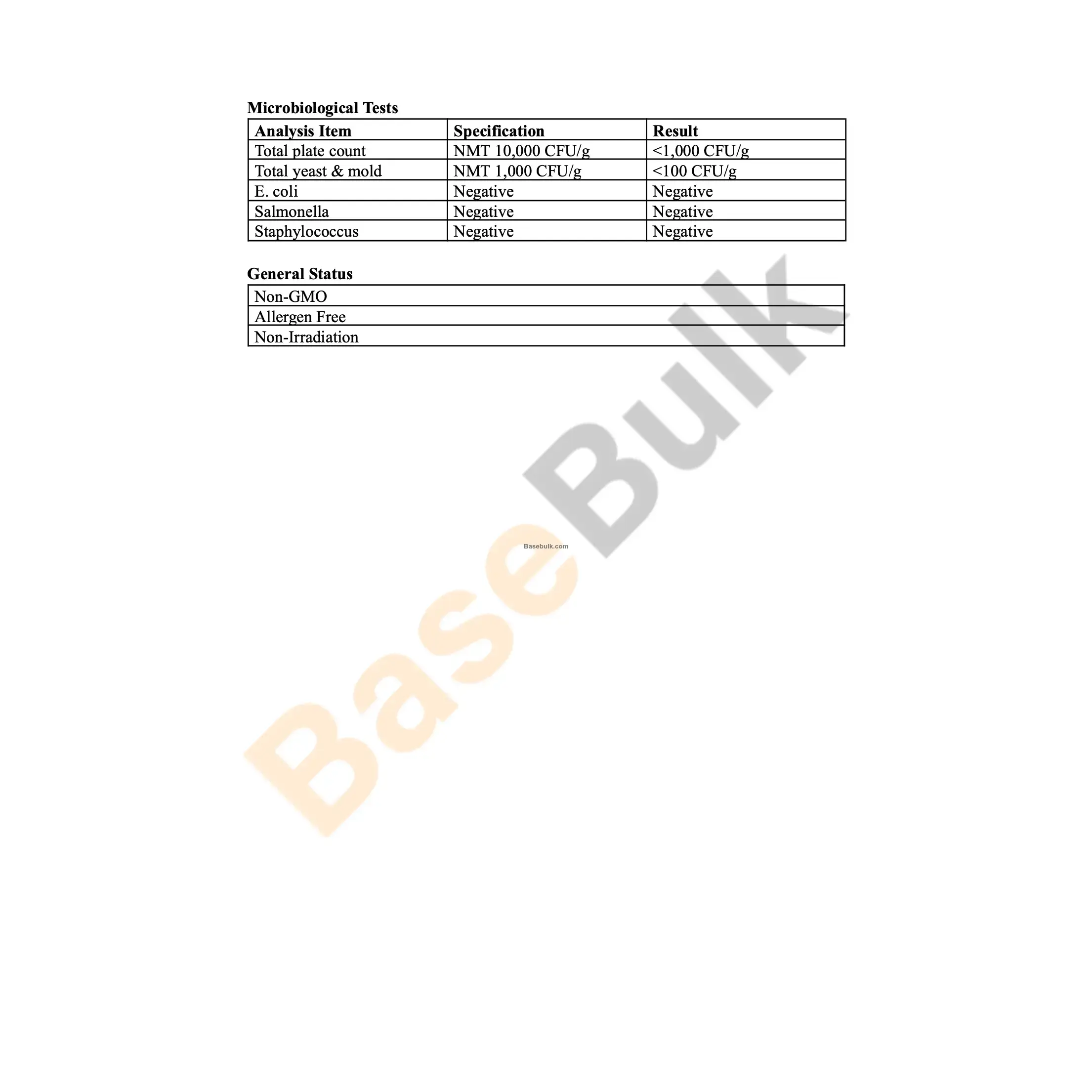Total yeast & mold | NMT 1,000 CFU/g | <100 CFU/g |