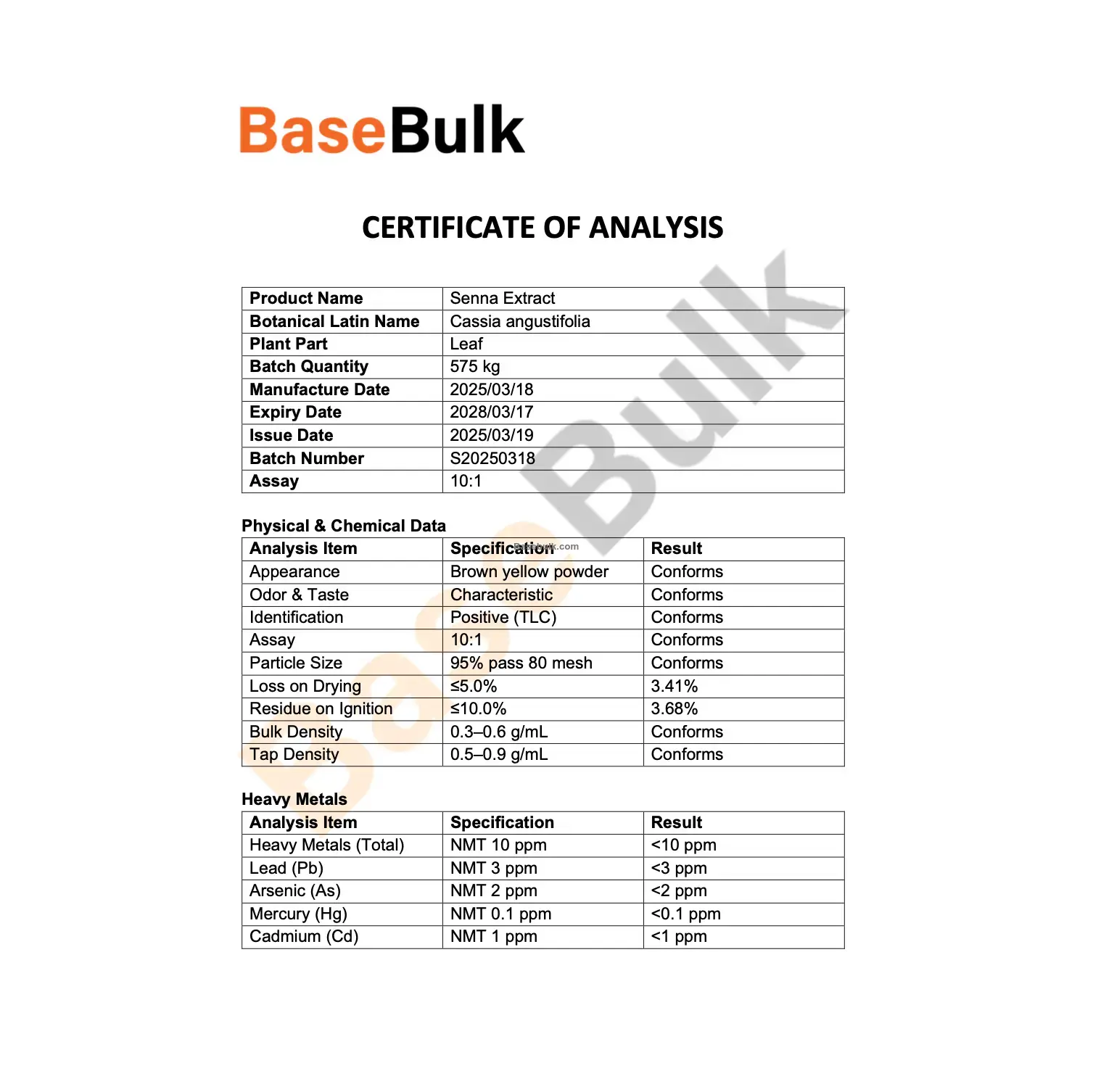 Total Yeast & Mold | NMT 100 cfu/g | <100 cfu/g |