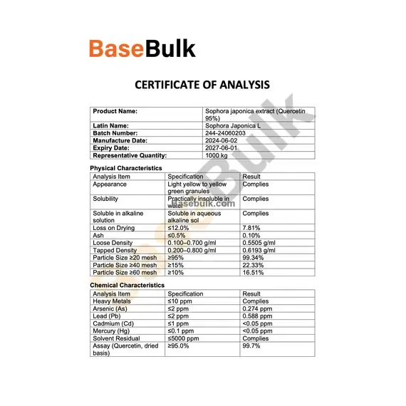 Assay (Quercetin, dried basis) | ≥95.0% | 99.7% |
