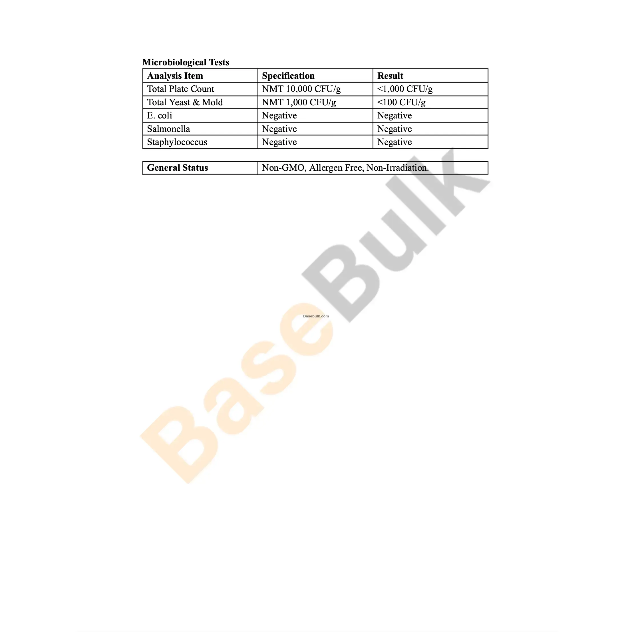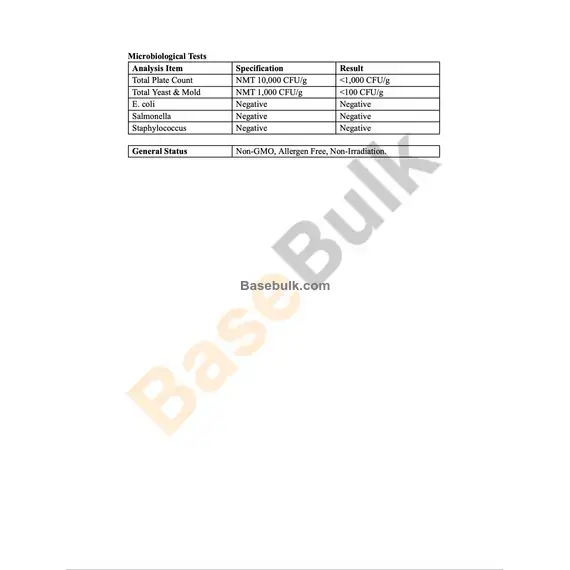 General Status | Non-GMO, Allergen Free, Non-Irradiation. |