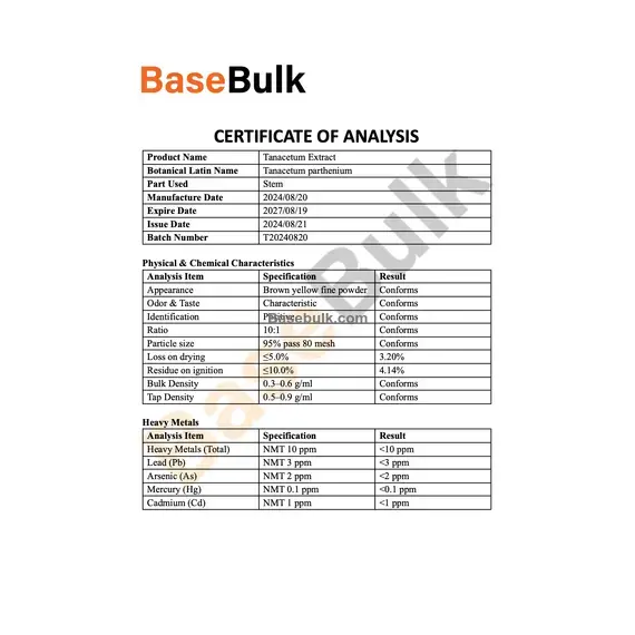 Bulk Density | 0.3–0.6 g/ml | Conforms |