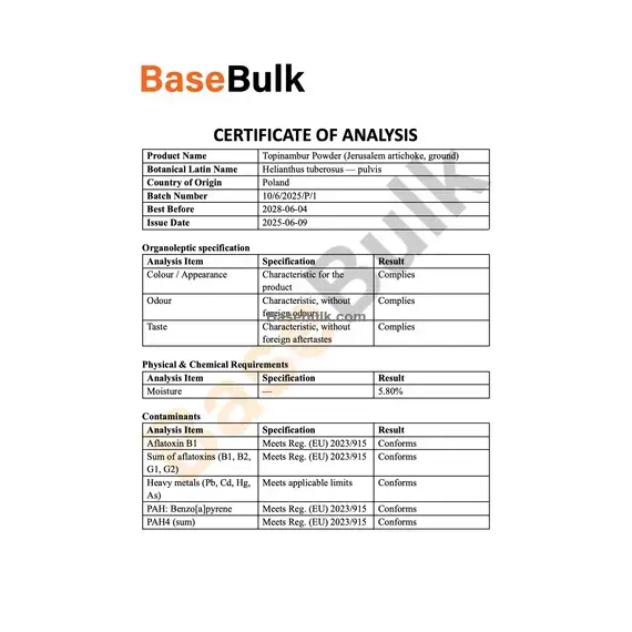 Sum of aflatoxins (B1, B2, G1, G2) | Meets Reg. (EU) 2023/915 | Conforms |