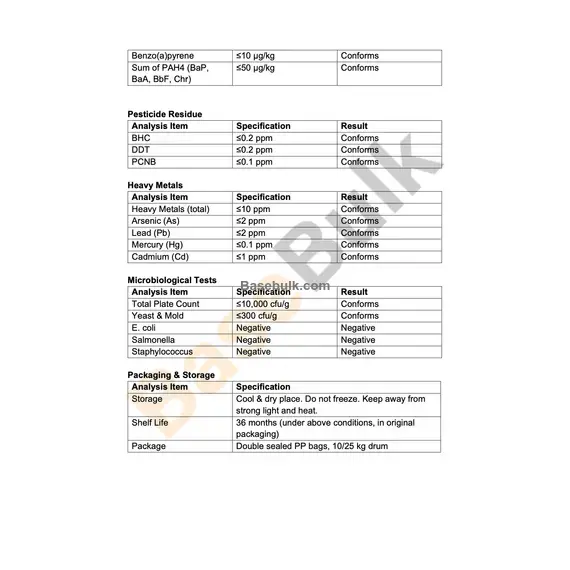 Benzo(a)pyrene | ≤10 µg/kg | Conforms |