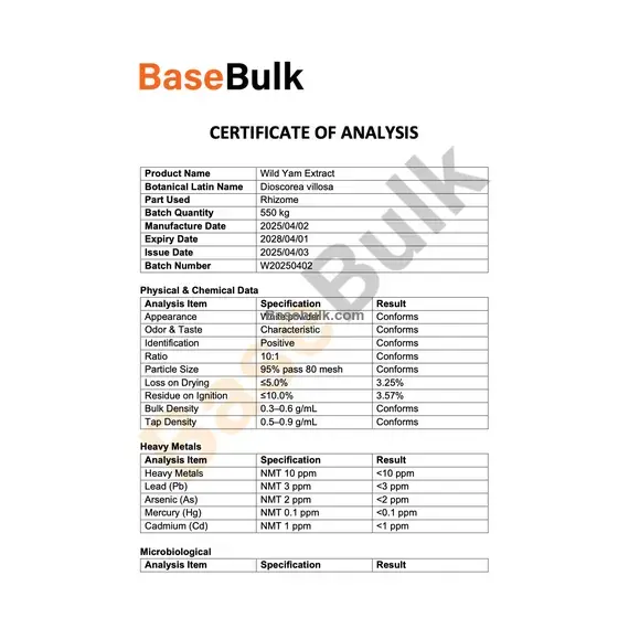 Bulk Density | 0.3–0.6 g/mL | Conforms |