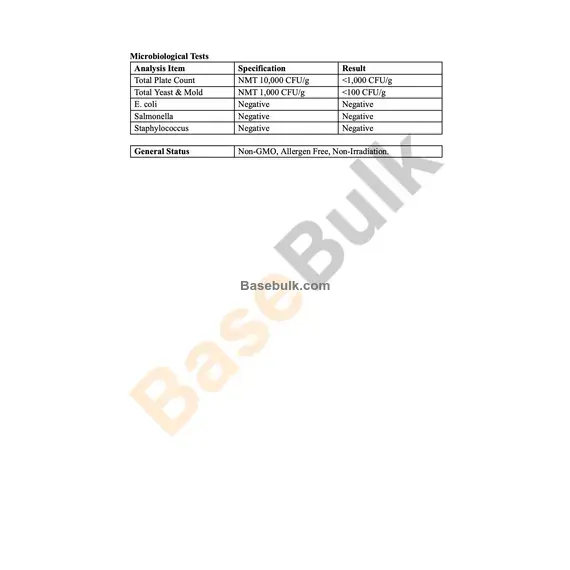 Non-GMO, Allergen Free, Non-Irradiation.