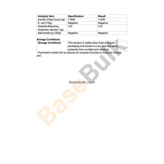 Sulphite-Reducing Anaerobic Spores* (/g) | ≤10 | ≤10 |