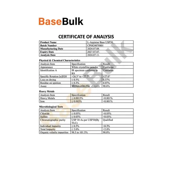 Appearance | White crystalline powder | Conforms |