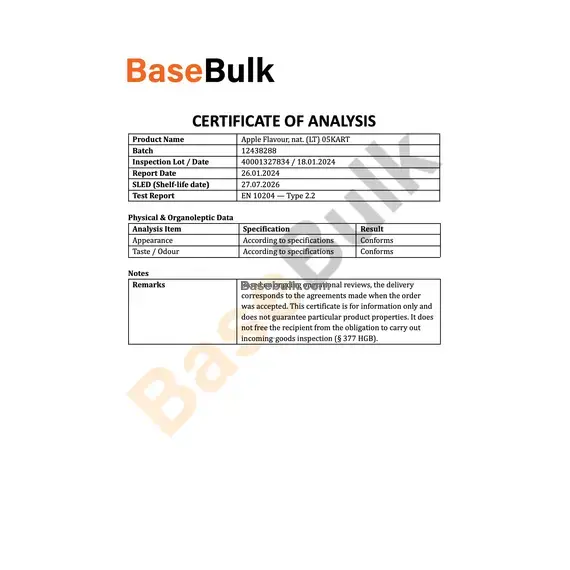 Based on ongoing operational reviews, the delivery corresponds to the agreements made when the order was accepted. This certificate is for information only and does not guarantee particular product properties. It does not free the recipient from the obligation to carry out incoming‑goods inspection (§ 377 HGB).