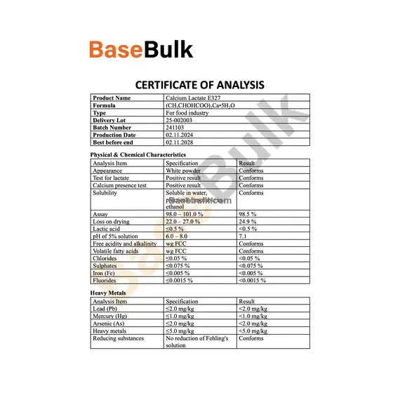 Calcium presence test | Positive result | Conforms |