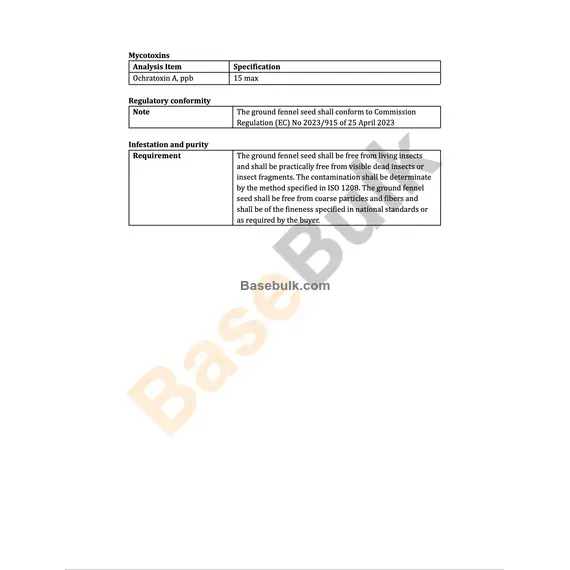 Note | The ground fennel seed shall conform to Commission Regulation (EC) No 2023/915 of 25 April 2023 |