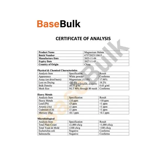 Assay (on dried basis) | Magnesium ≥15.0% | 17.88% |