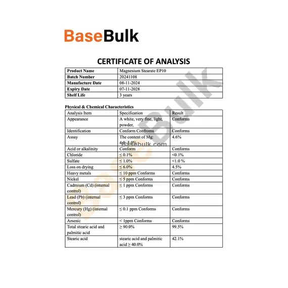 Heavy metals | ≤ 10 ppm Conforms | Conforms |