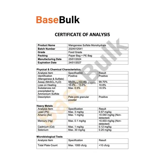 Assay (MnSO₄·H₂O) | 98.0% – 102.0% | 99.70% |