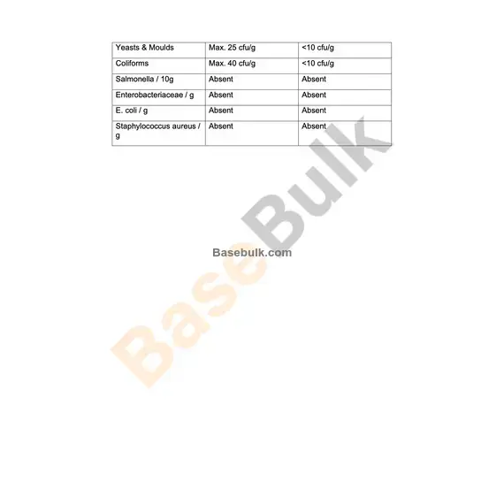 Yeasts & Moulds | Max. 25 cfu/g | <10 cfu/g |