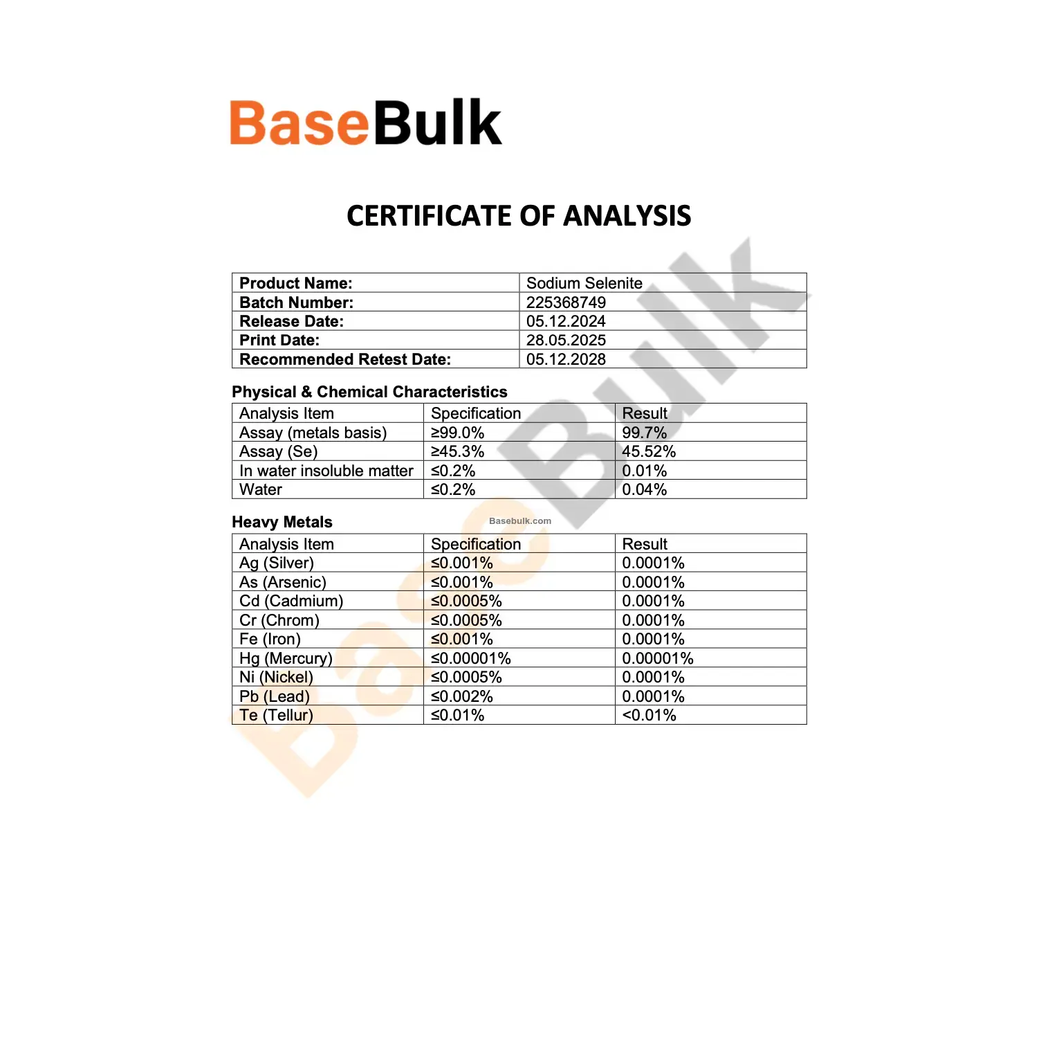 Cd (Cadmium) | ≤0.0005% | 0.0001% |
