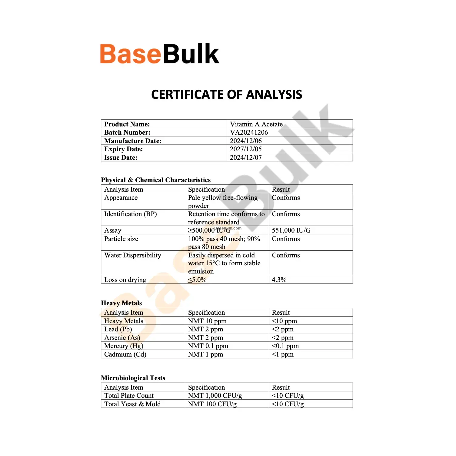 Analysis Item | Specification | Result |