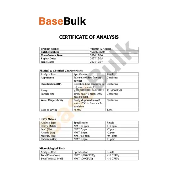 Vitamin A (Retinyl Acetate 500 000 IU/g)