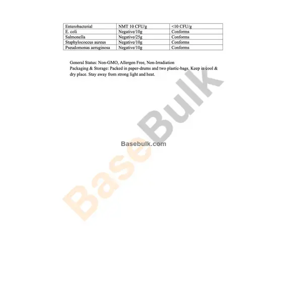 General Status: Non-GMO, Allergen Free, Non-Irradiation