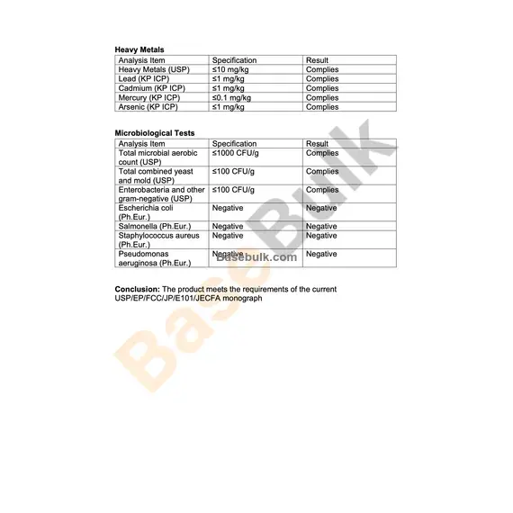 Conclusion: The product meets the requirements of the current USP/EP/FCC/JP/E101/JECFA monograph