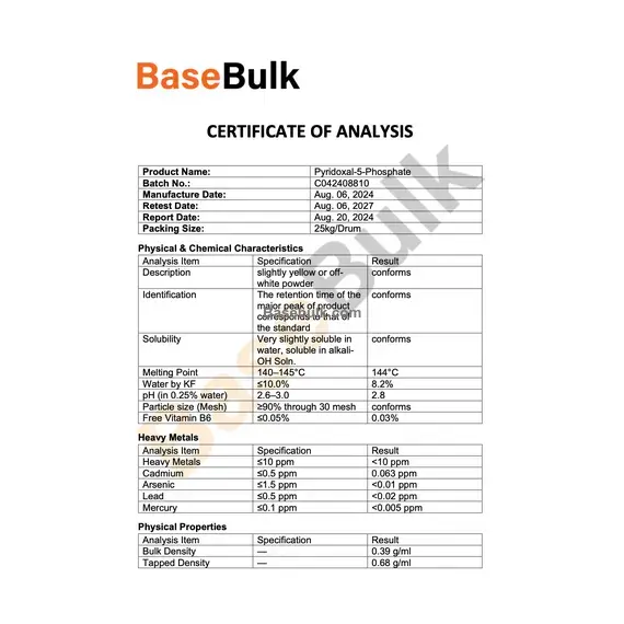 Free Vitamin B6 | ≤0.05% | 0.03% |