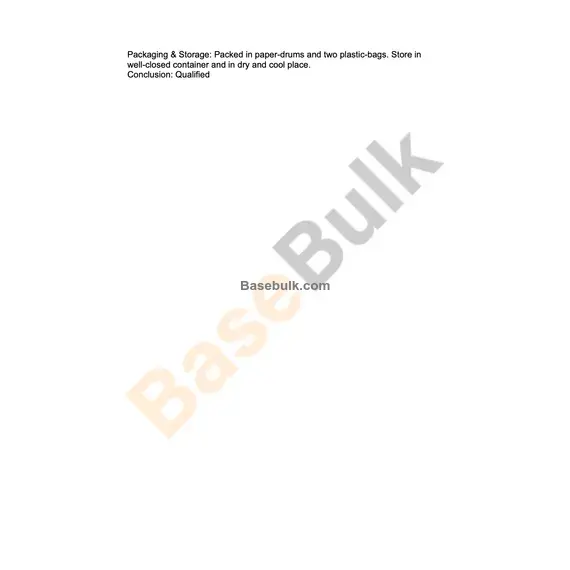 Packaging & Storage: Packed in paper-drums and two plastic-bags. Store in well-closed container and in dry and cool place.